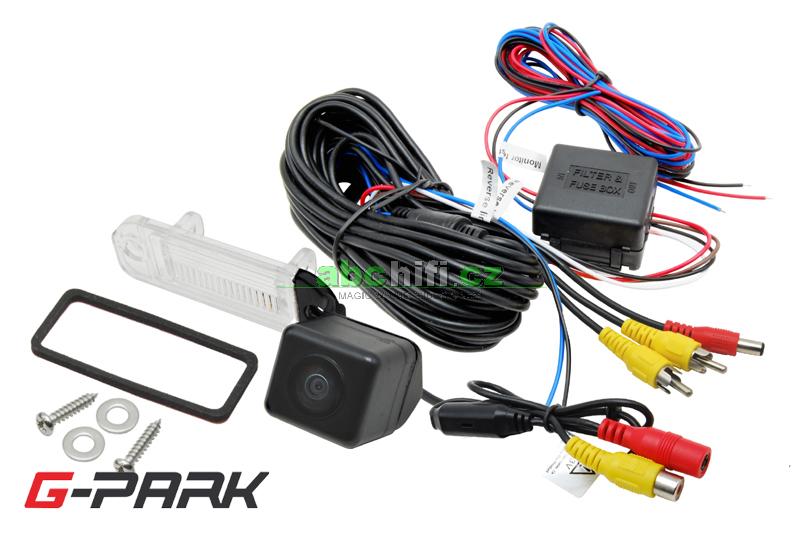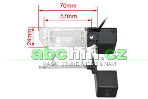 CCD parkovací kamera pro instalaci na místo osvětlení zadní registrační značky. Součástí kamery je místo pro umístění žárovky z původního světla pro registrační značku.